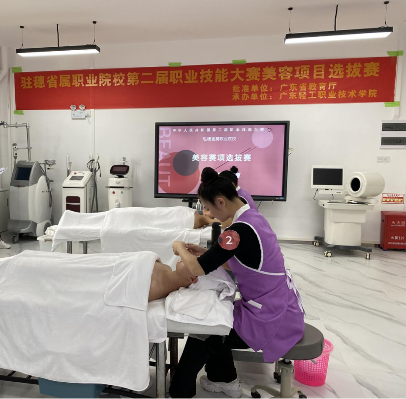 2023年2月14日,经教育厅批准,由我们承办的中华人民共和国第二届职业技能大赛驻穗省属职业院校美容项目选拔赛在太阳集团tyc5997美容化妆品实训基地举办,广东省职业技能服务指导中心美容专家梁小洁、全国技术能手亚洲化妆美甲大赛冠军师鹰等行业专家和轻化工技术学院主持工作副院长陈金伟、副院长云娜等出席了大赛开幕式。