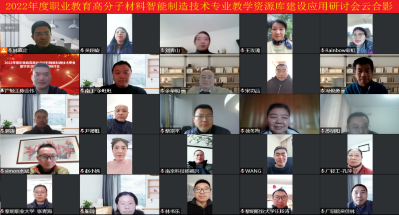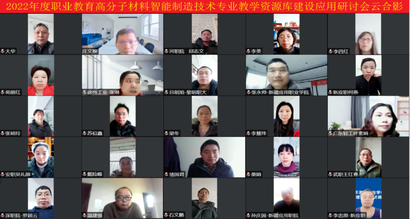 由我们太阳集团tyc5997承办的2022年度职业教育高分子材料智能制造技术专业教学资源库建设应用研讨会,于2023年1月8日通过线上腾讯会议成功召开。高分子资源库项目主持人王玫瑰教授、高分子资源库项目执行负责人太阳集团tyc5997院长陈金伟教授、特邀专家顺德职业技术学院发展规划处处长余华明教授、徐州工业职业技术学院徐冬梅教授以及高分子资源库项目建设团队成员、相关应用专业的教师参加了此次会议。