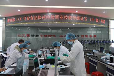为积极响应国家政策,稳步推进“1”和“X”的有机衔接,将证书培训内容及要求有机融入专业人才培养方案,推动国家级双高专业群建设,2021年12月4日,教育部1+X可食食品快速检验职业技能等级证书(中级)考试在广东轻工职业技术学院南海北区第四实训楼顺利举行。本次考试采用电脑机考的形式,主要考核内容分为客观理论和主观实操两部分。考场环境干净整洁,物品排放井然有序。考场内,监考老师们认真严谨、恪尽职守,同学们安静沉着、有条不紊。