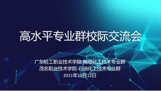 2021年10月12日晚上8:00时,广东职教桥数据科技有限公司举办线上校际交流会。参加本次会议的有茂名职院化工系党总支副书记黄小翰、副主任陈少峰共23人参加。我们副院长陈金伟及相关老师受邀参加,并在会上与茂名职院化工系进行了专业建设等方面的经验交流。